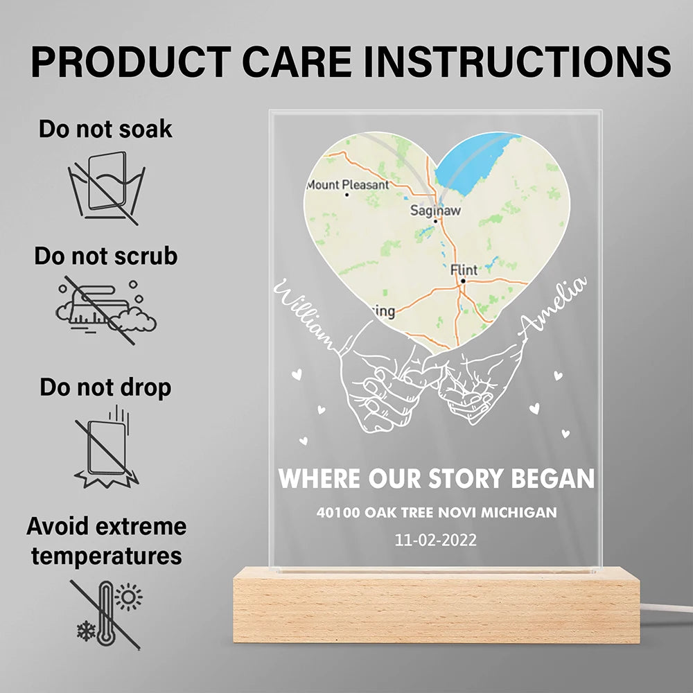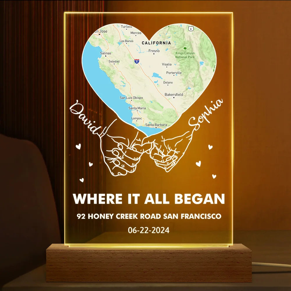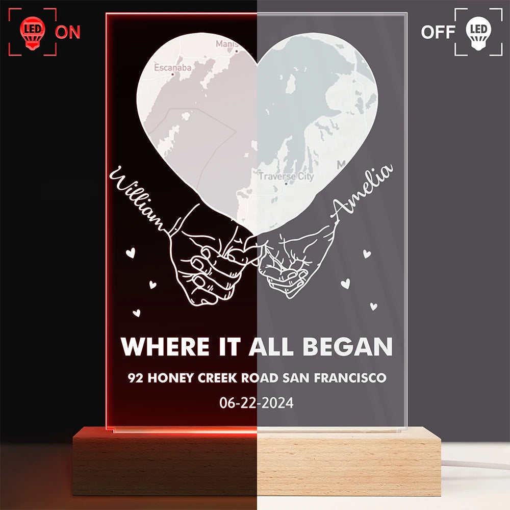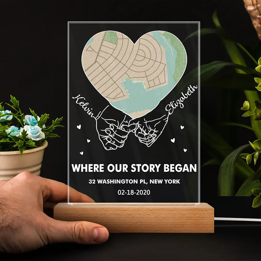 Where Our Story Began Personalized 3D Led Light, Location Map Night Light, Couple Gifts