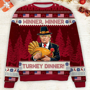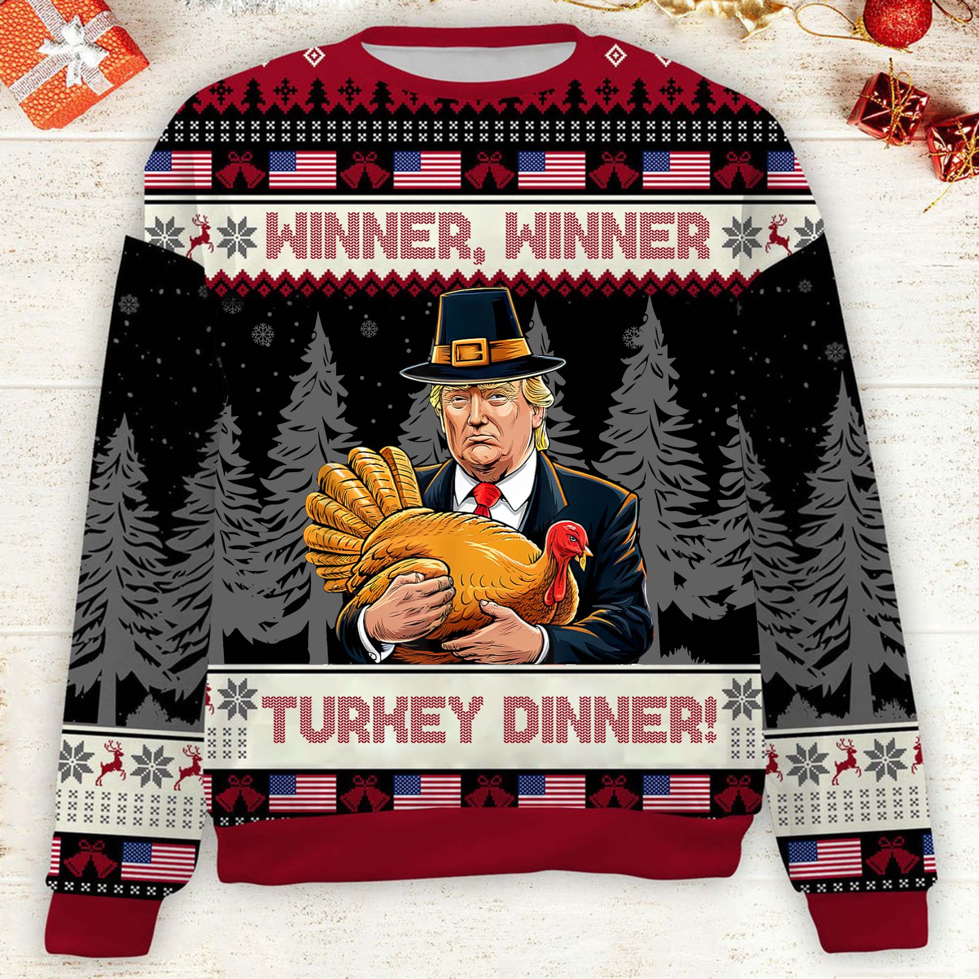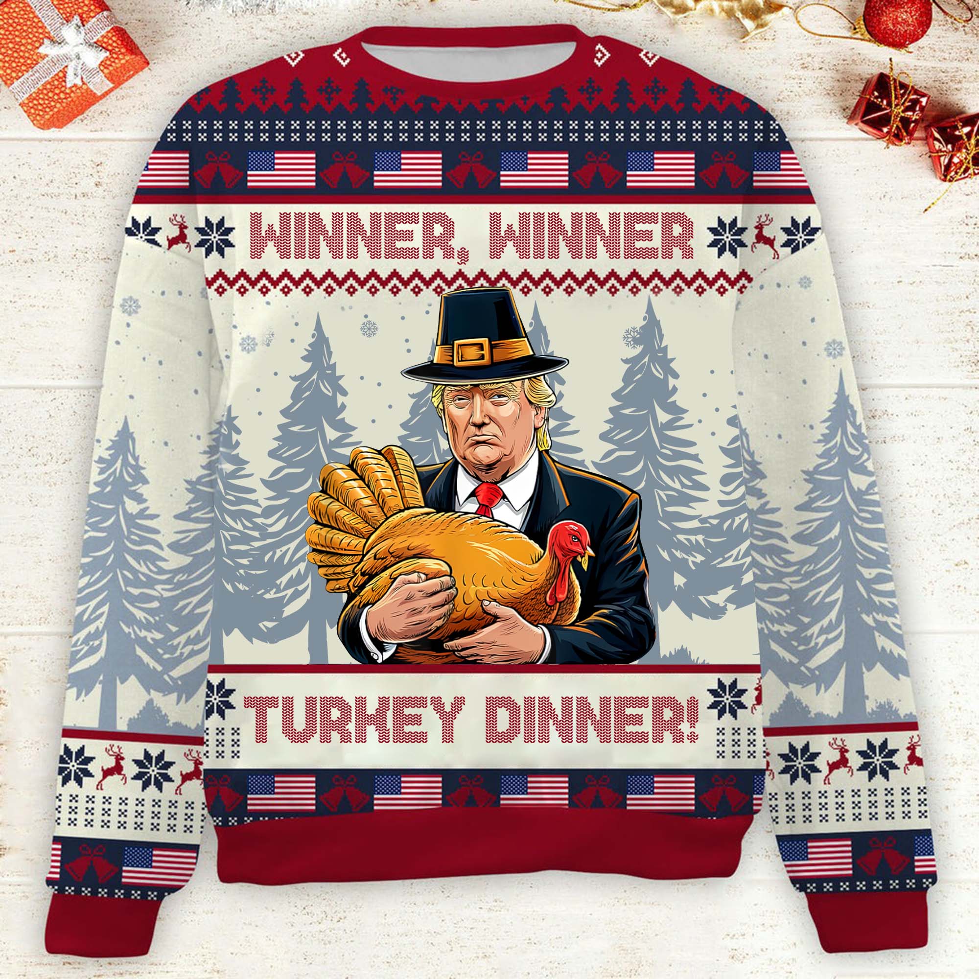 Winner Winner Turkey Dinner Funny Humorous Trump2024 Funny Christmas Ugly Sweater, Funny Political Shirts