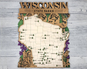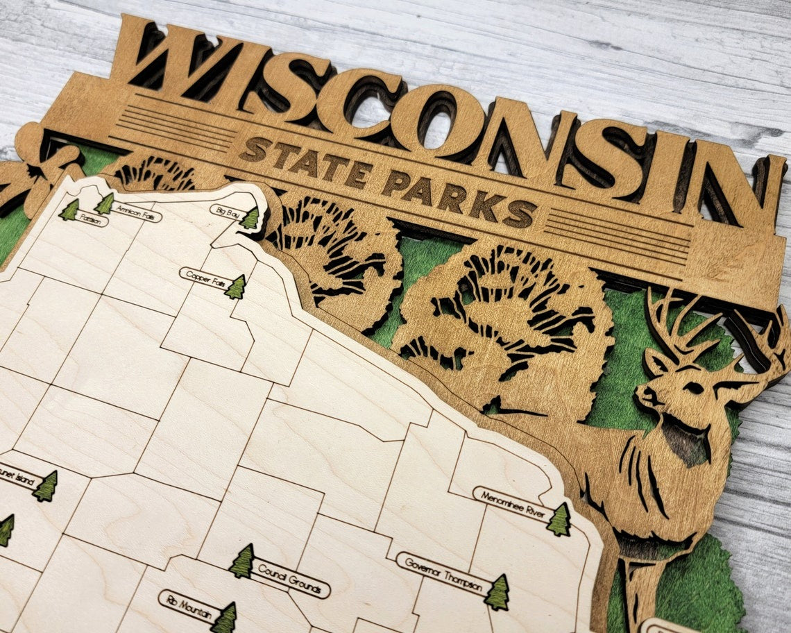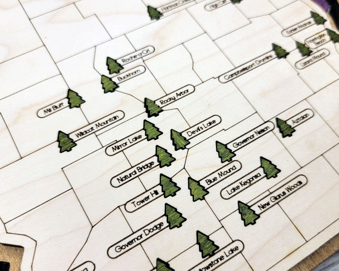 Wisconsin State Park Map, Personalized Travel Map, Gift For Travelers