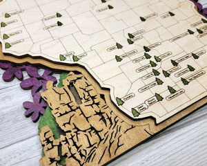 With our custom engraved badge, your wood map becomes a one-of-a-kind storyteller - marking your family name and the beginning of countless outdoor journeys through America's most beautiful parks.