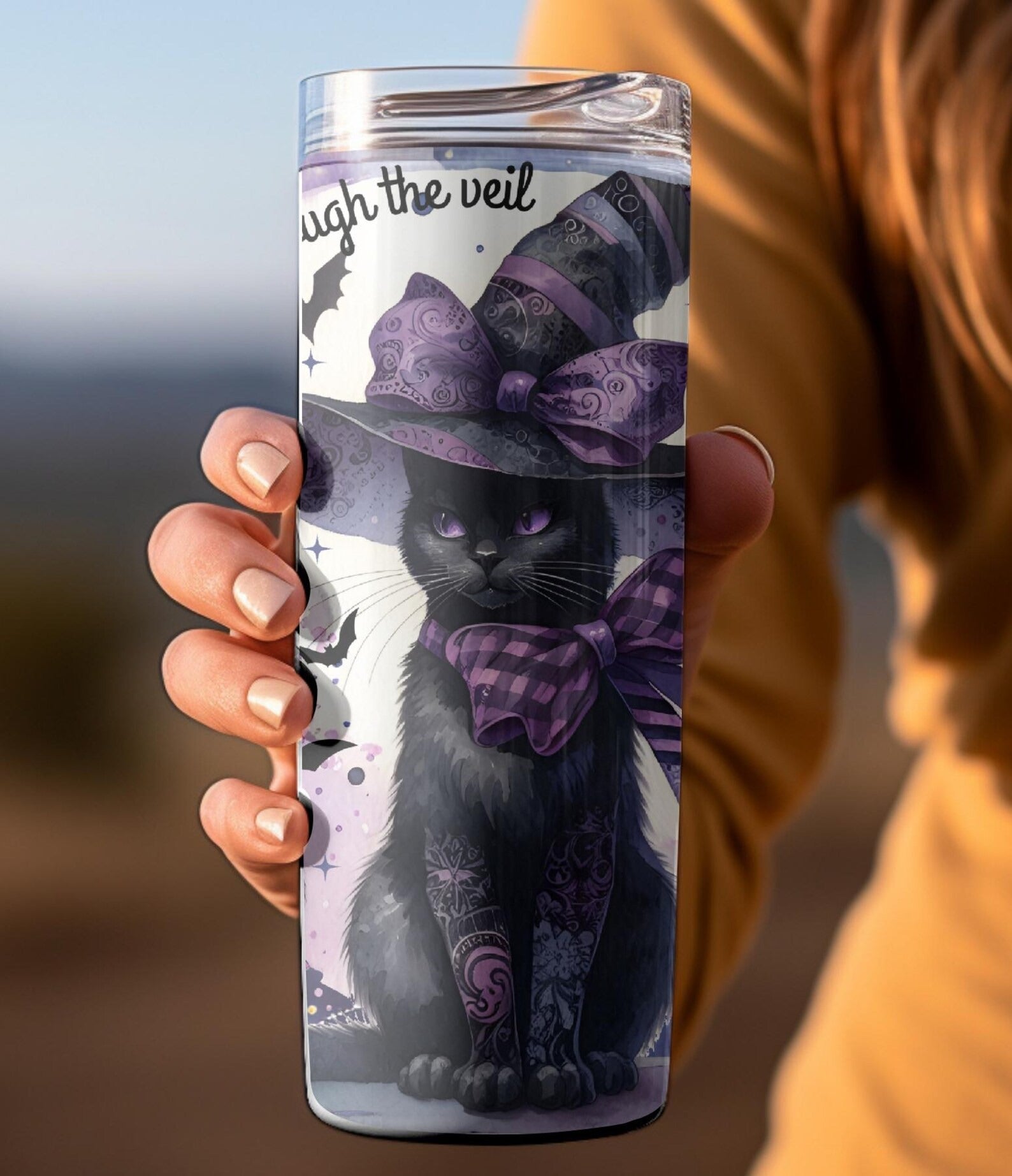 Witchy Black Cat 20oz 30oz Tumbler, Mystical Halloween Tumbler, Halloween Gifts