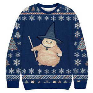 Wizard Cat Funny Halloween Vintage Christmas Sweater, Ugly Xmas Sweater, Christmas Ugly Sweatshirt