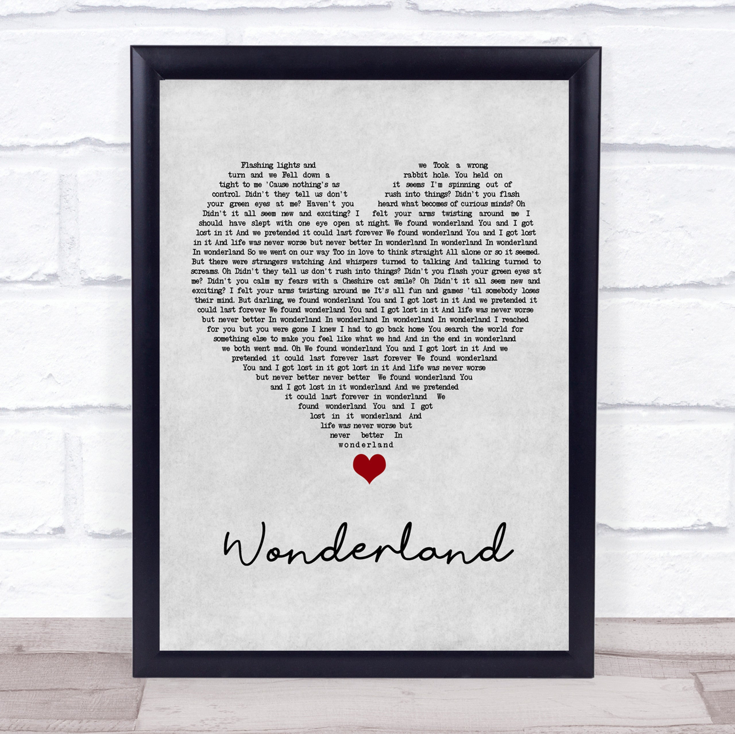 Wonderland Canvas Wall Art With Song Lyrics, Grey Heart Song Lyric Music Canvas, Gift For Swifties