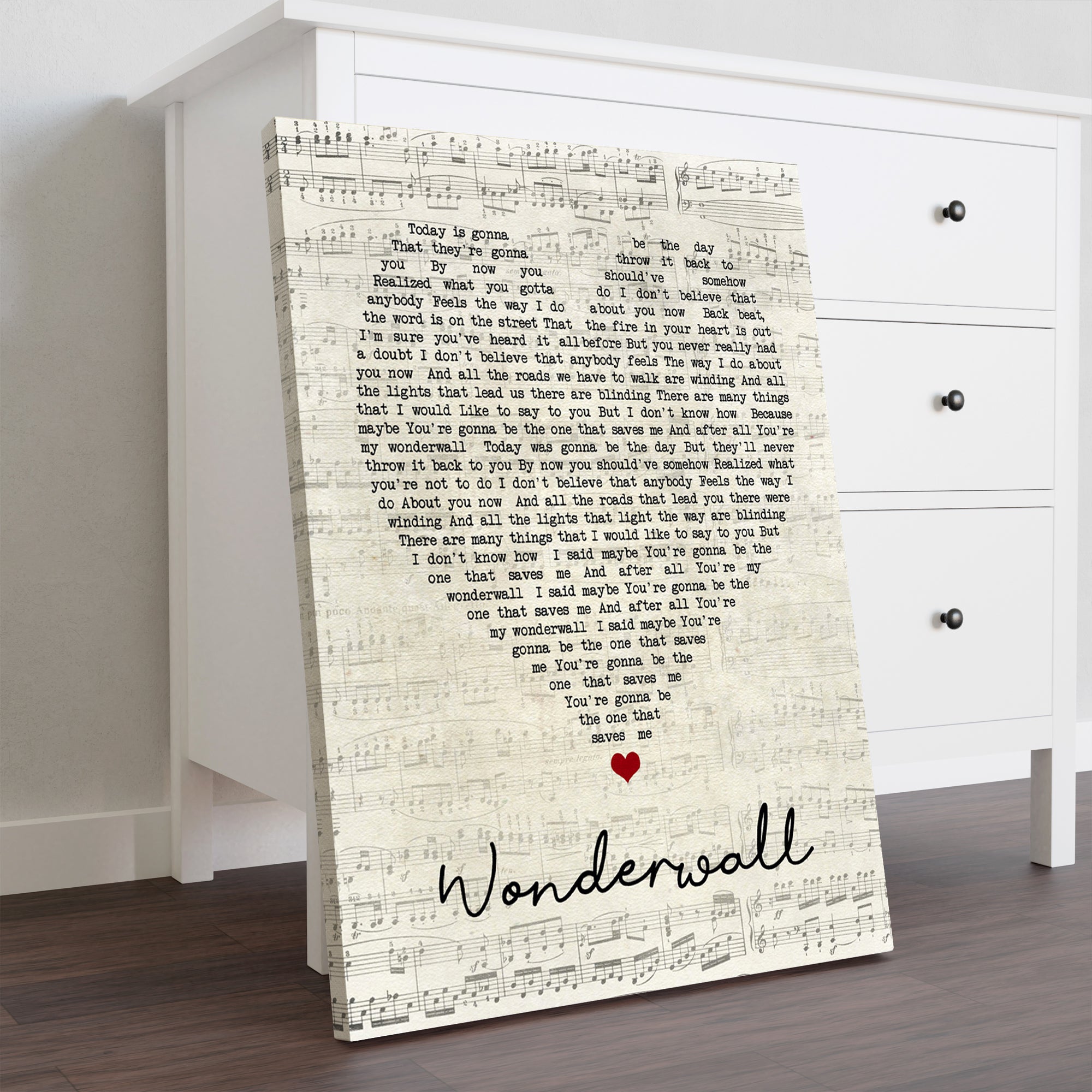 Wonderwall Oasis Script Heart Song Lyric Art Print Canvas Print Frames