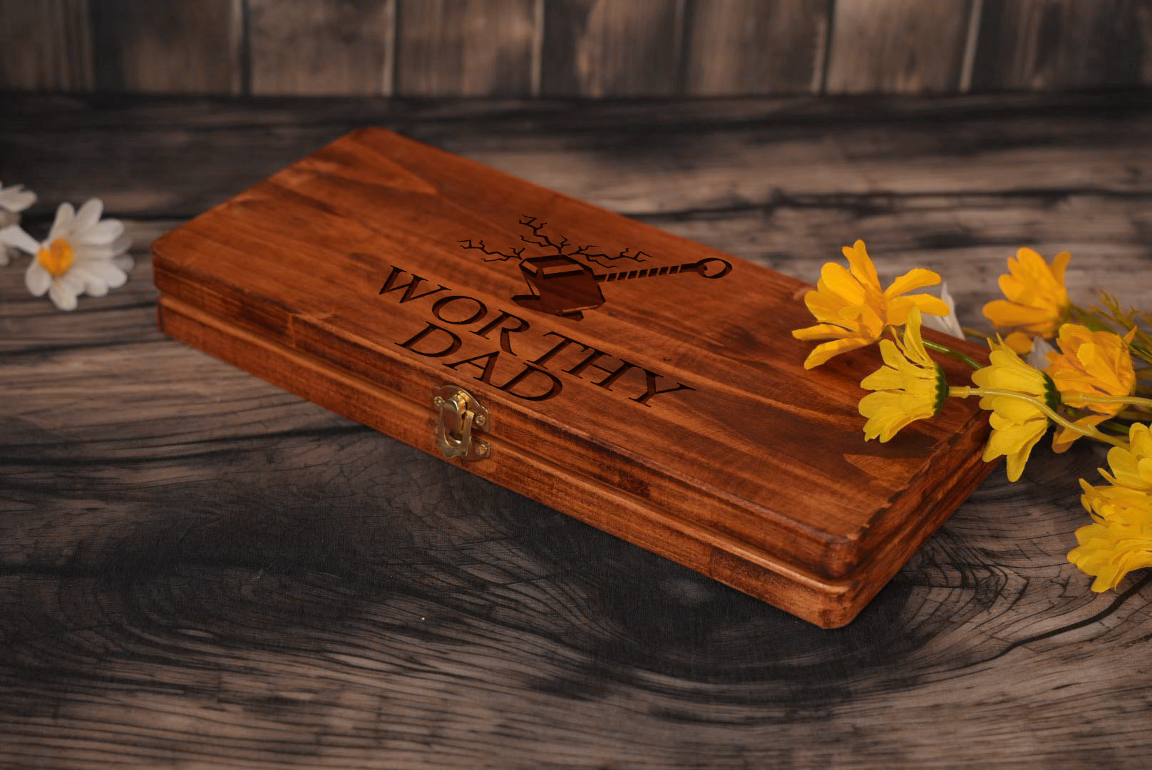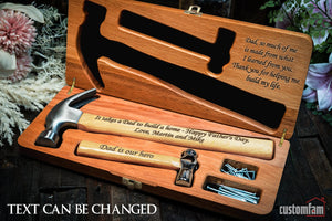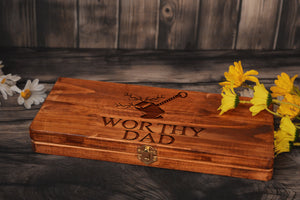 Worthy Dad Personalised Engraved Hammer Gift Set with Wooden Box and Nails, Framing Hammer, Gifts For Dad