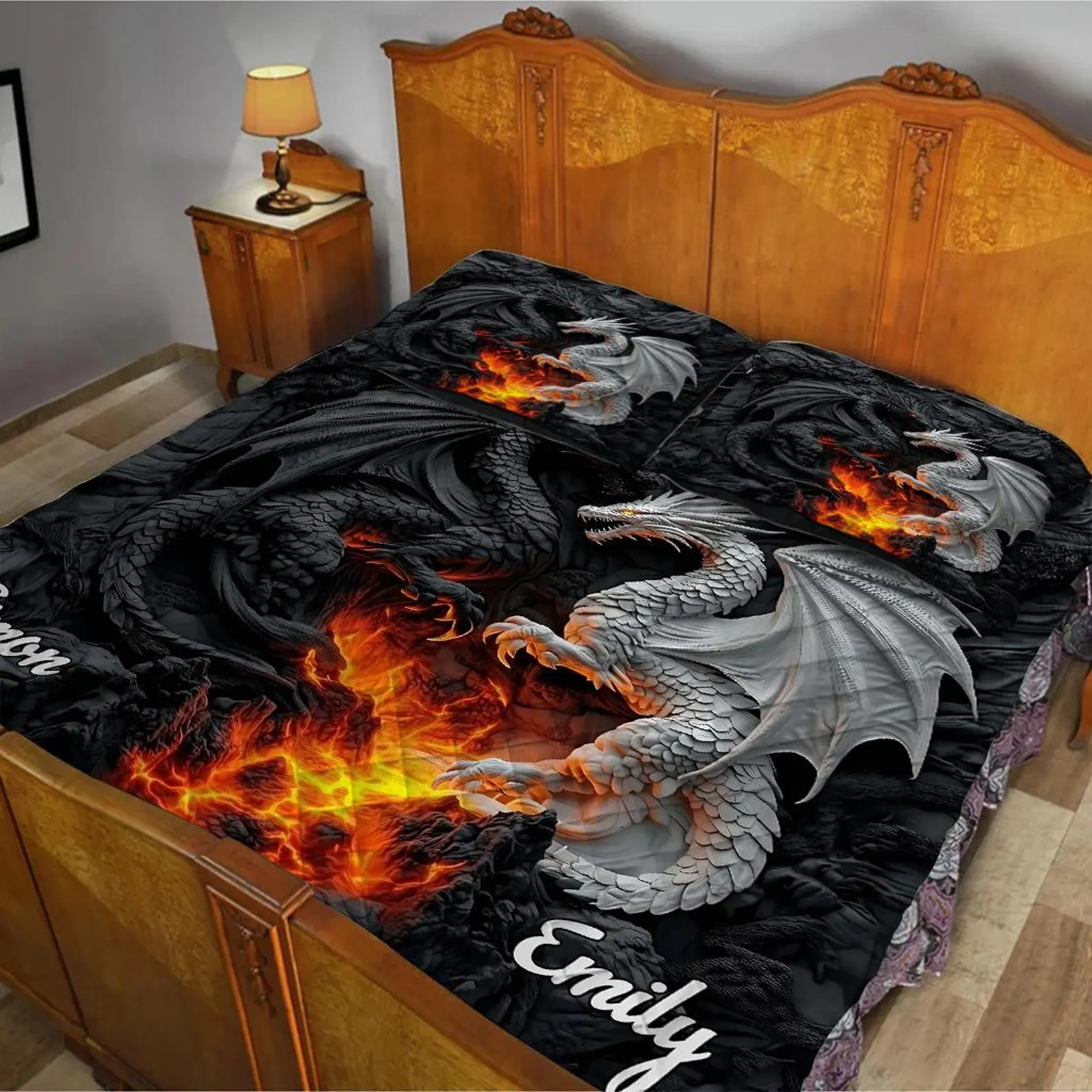 Crafted for comfort and style, this quilt set adds a striking and meaningful touch to your bedroom decor. Whether itās a Valentineās Day surprise, an anniversary gift, or a special treat for a dragon-loving couple, this set captures the essence of a bond thatās both powerful and enduring.