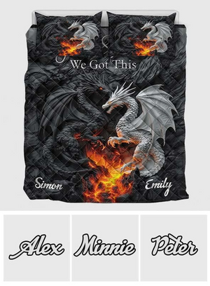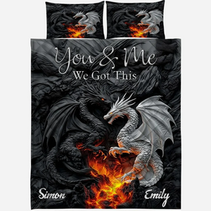 You and Me We Got This Black White Dragon Couple Quilt Bed Sets, Dragon Bed Set, Couple Bedding Set, Couple Valentine Gift