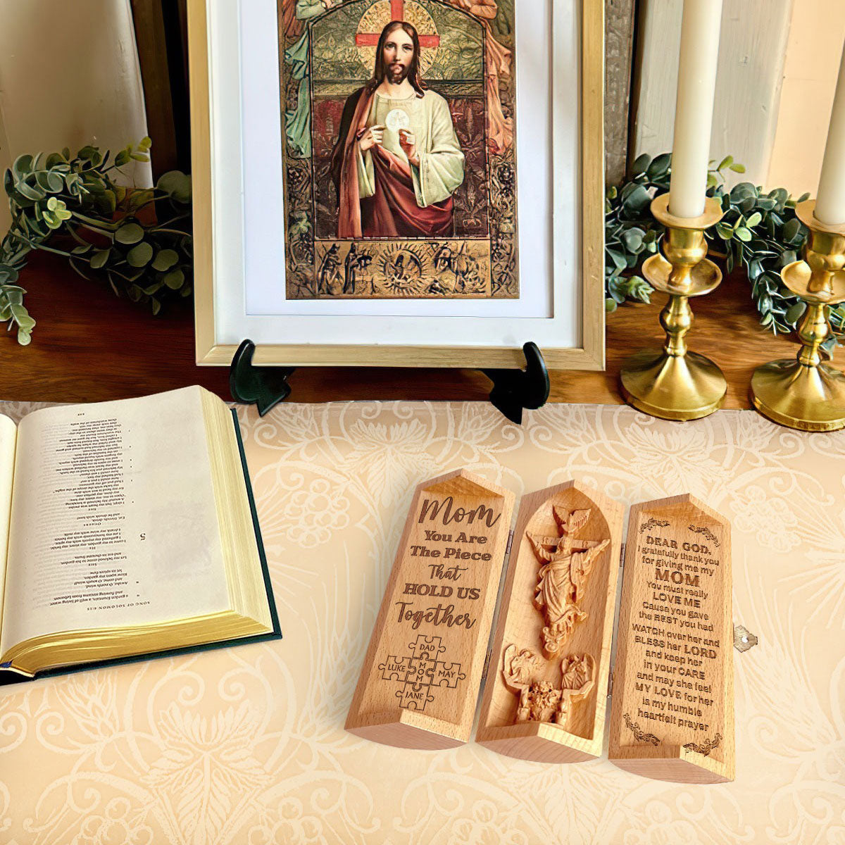 You Are The Piece That Hold Us Together Openable Wooden Cylinder Sculpture Of Jesus Christ, Mother's Day Gift, Christian Gifts For Women