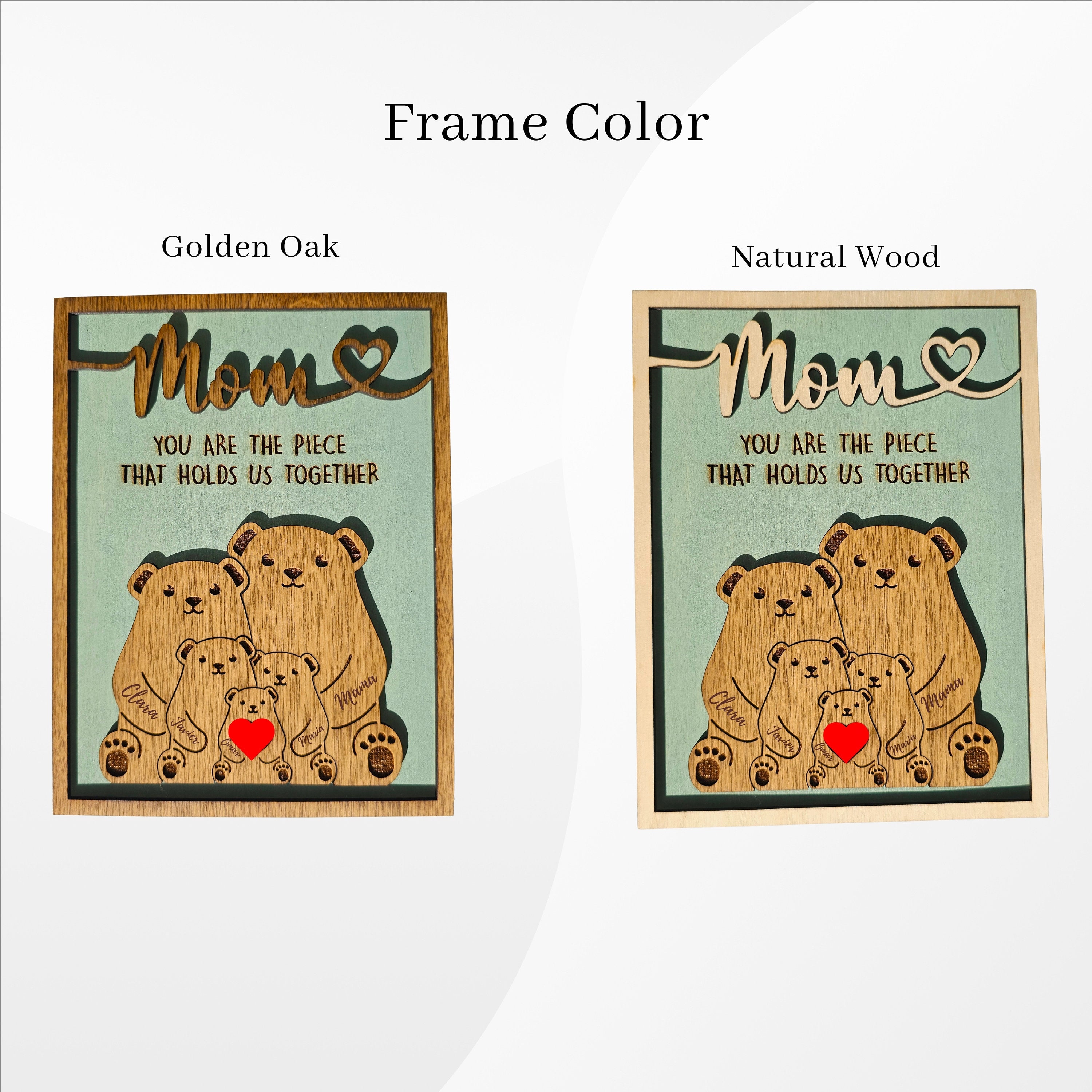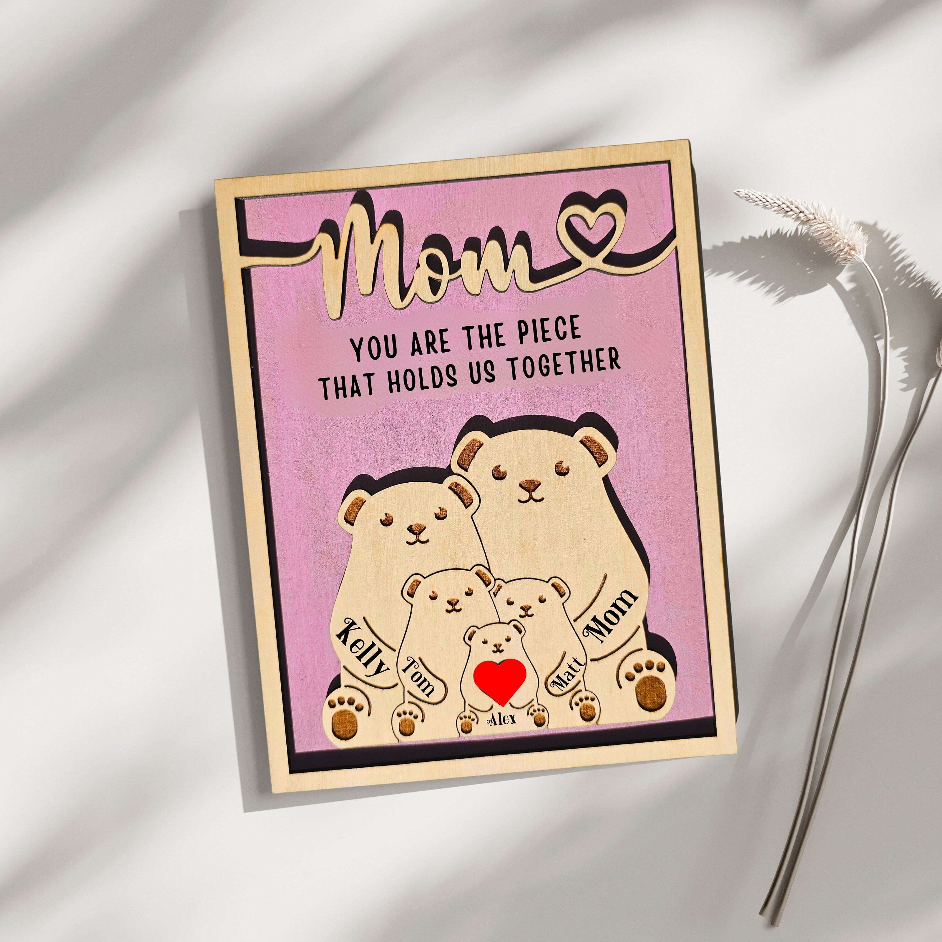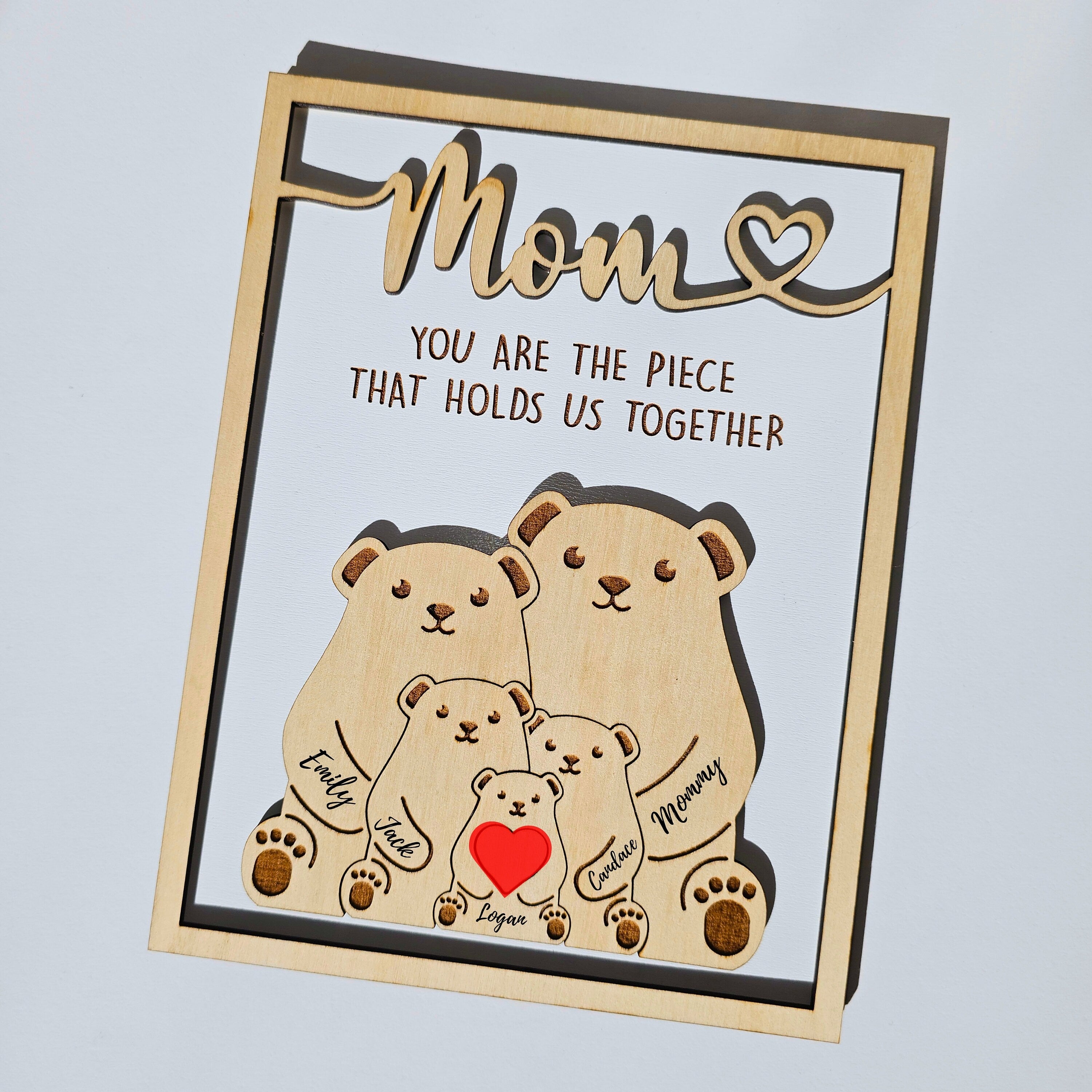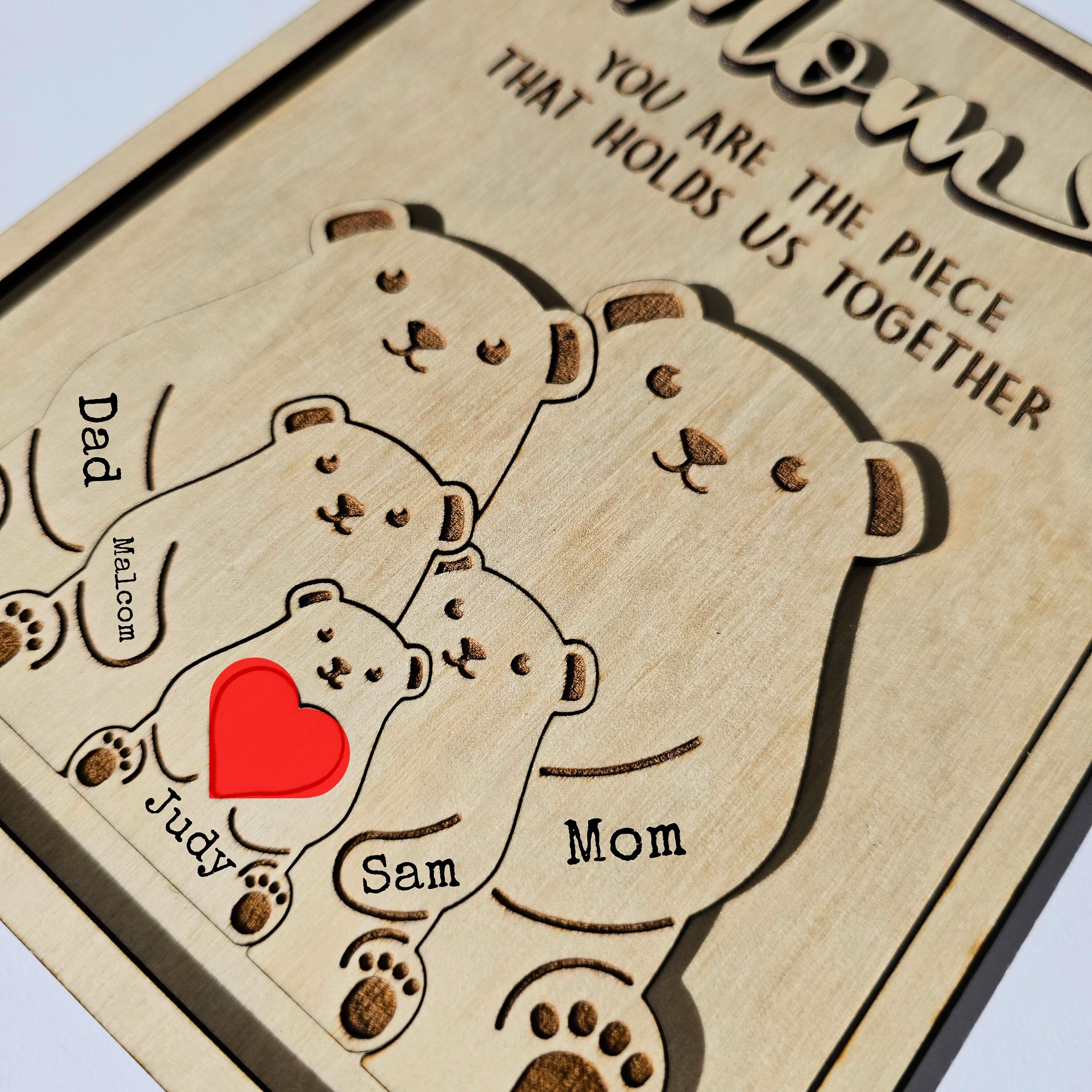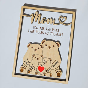 π Mother's Day Wooden Plaque β Honor the love and dedication that binds your family with this meaningful gift for Mom. This Mother's Day, delight her with a charming wooden plaque adorned with a bear puzzle design and the heartfelt message: "You Are The Piece That Holds Us Together." This thoughtful gift, more special than words can express, will bring happiness to your mother or wife and fill her heart with warmth and joy.π