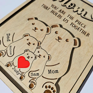 You Are The Piece That Holds Us Together Custom Bear Puzzle Sign, Gift For Mom
