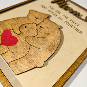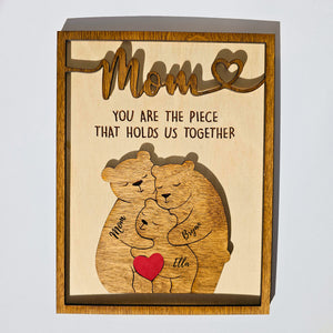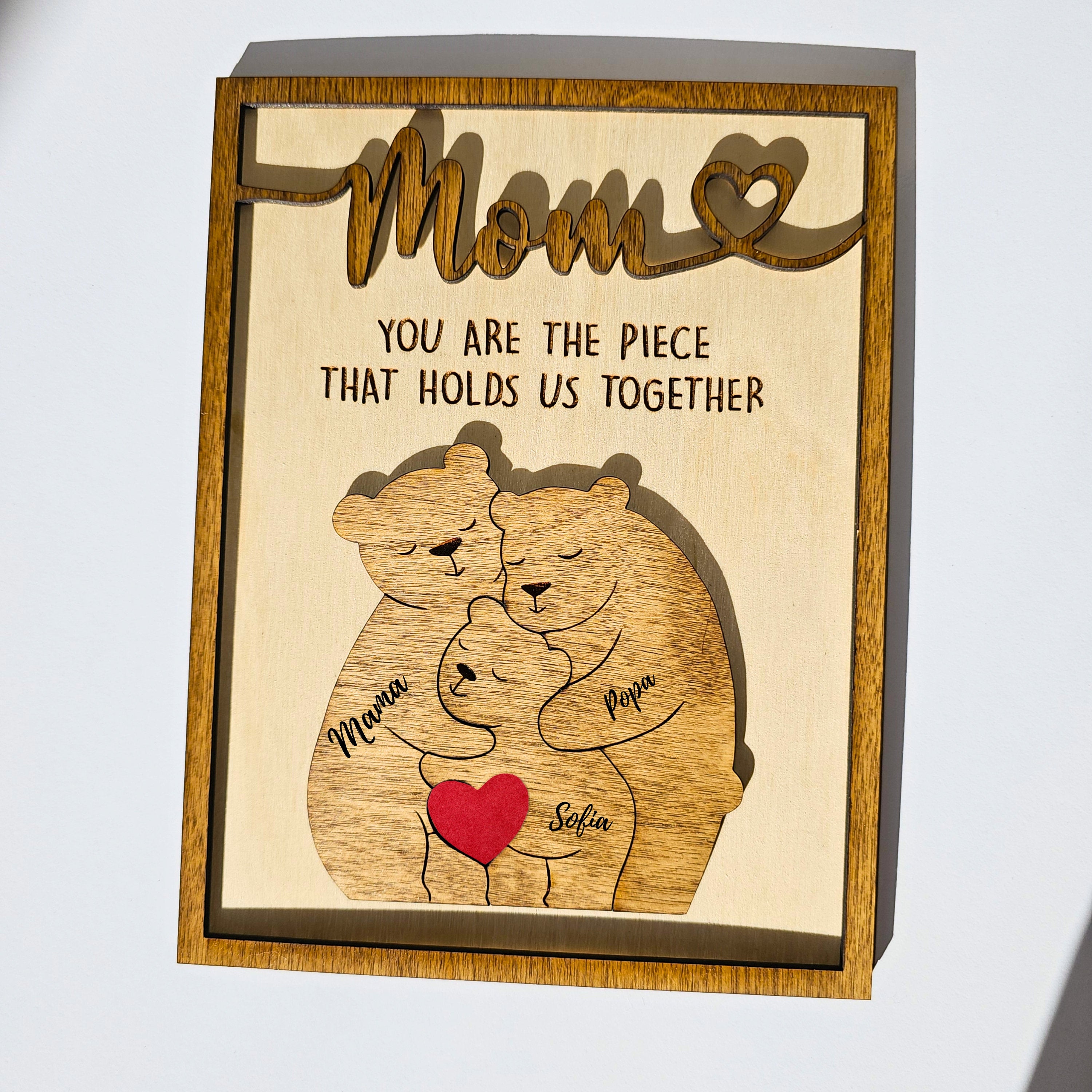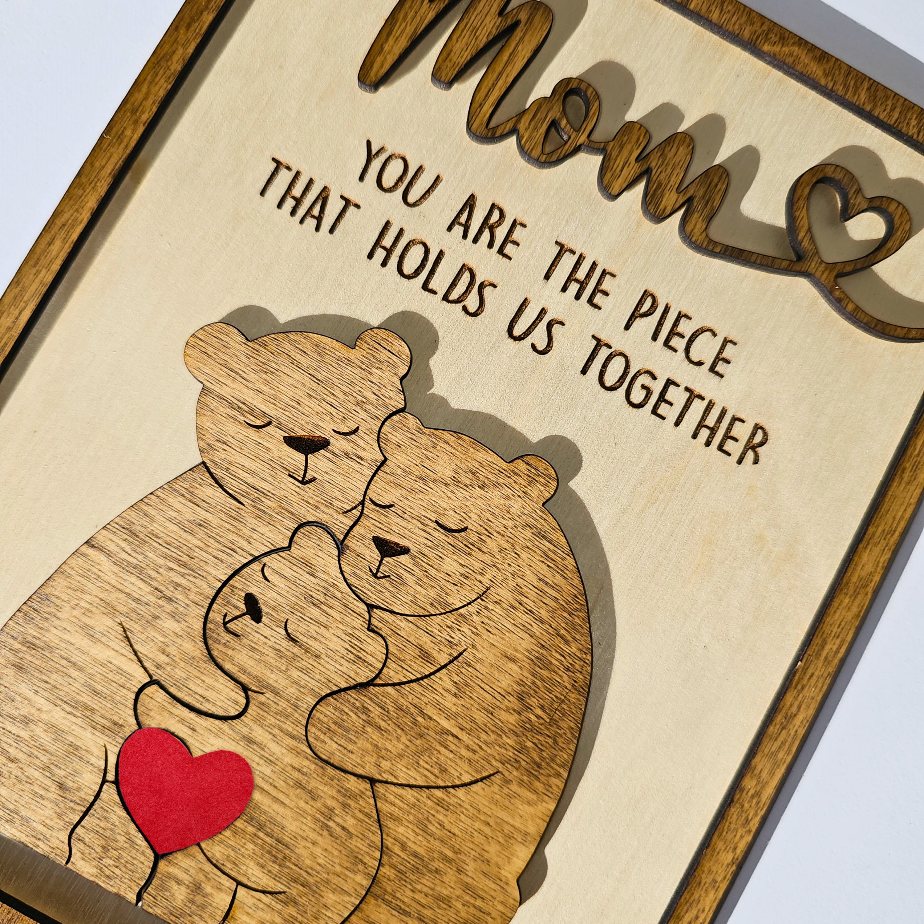π Mother's Day Wooden Plaque β Honor the love and dedication that binds your family with this meaningful gift for Mom. This Mother's Day, delight her with a charming wooden plaque adorned with a bear puzzle design and the heartfelt message: "You Are The Piece That Holds Us Together." This thoughtful gift, more special than words can express, will bring happiness to your mother or wife and fill her heart with warmth and joy.π