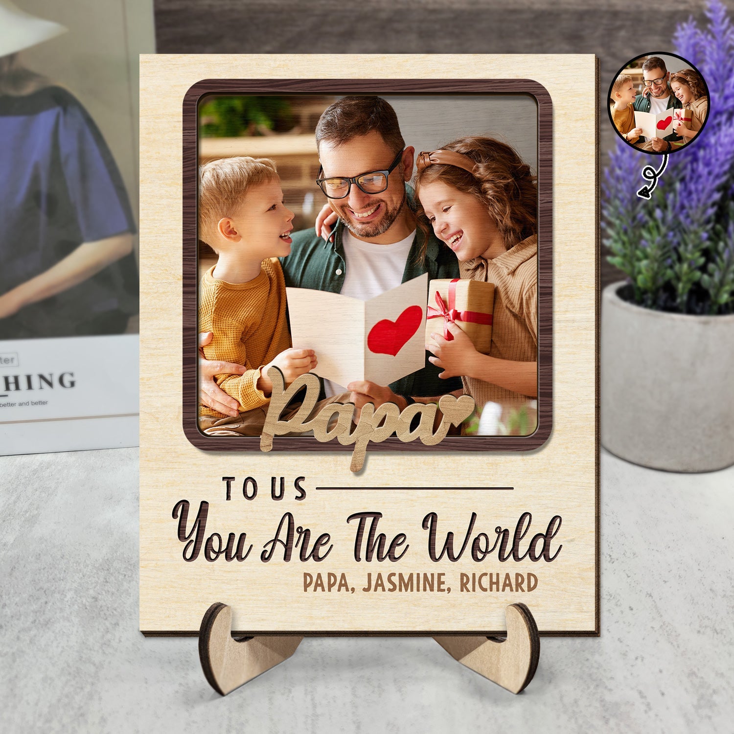 You Are The World Personalized 2-Layered Wooden Plaque With Stand, Gifts For Families