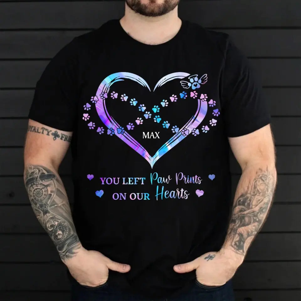 You Left Paw Prints On My Heart Personalized T-Shirt, Gift For Pet Lovers, Dog Shirt