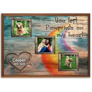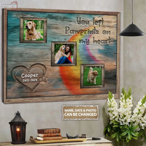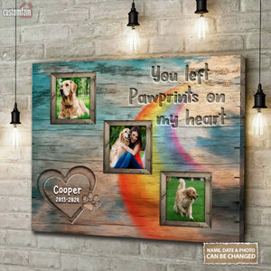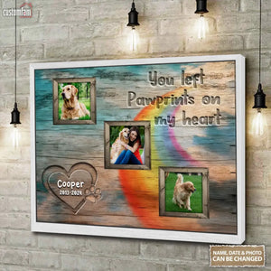 You Left Pawprints On My Heart Personalized Photo Canvas, Pet Memorial Gifts, Gift For Pet Lovers, Dog Loss Gift