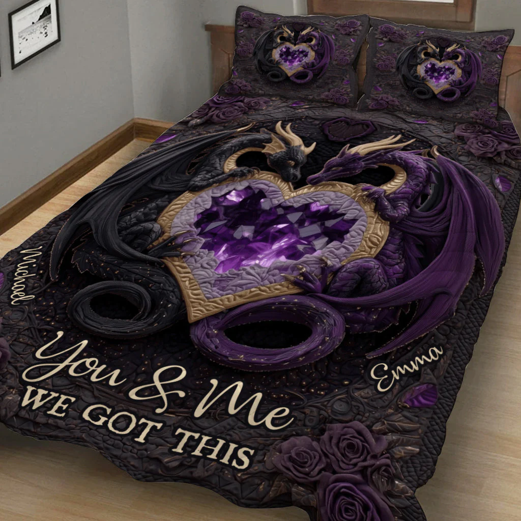 You & Me We Got This Fantasy Dragon Couple Bedding Set, Couple Valentine Gift, Custom Valentines Gift
