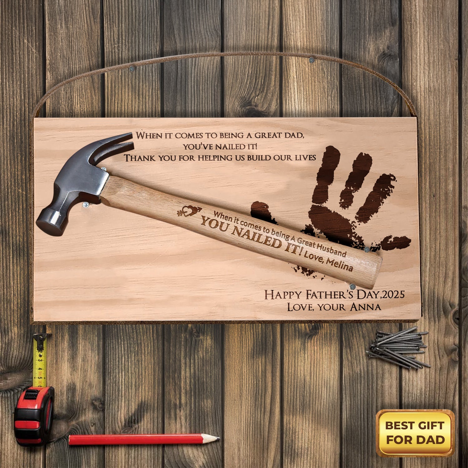 You Nailed It Personalized Wooden Engraved Hammer, Framing Hammer, Happy Father's Day Gifts