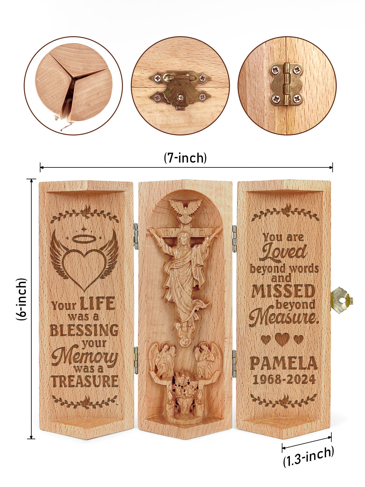 Your Life Was A Blessing, Openable Wooden Cylinder Sculpture of Jesus Christ, Christ Decor