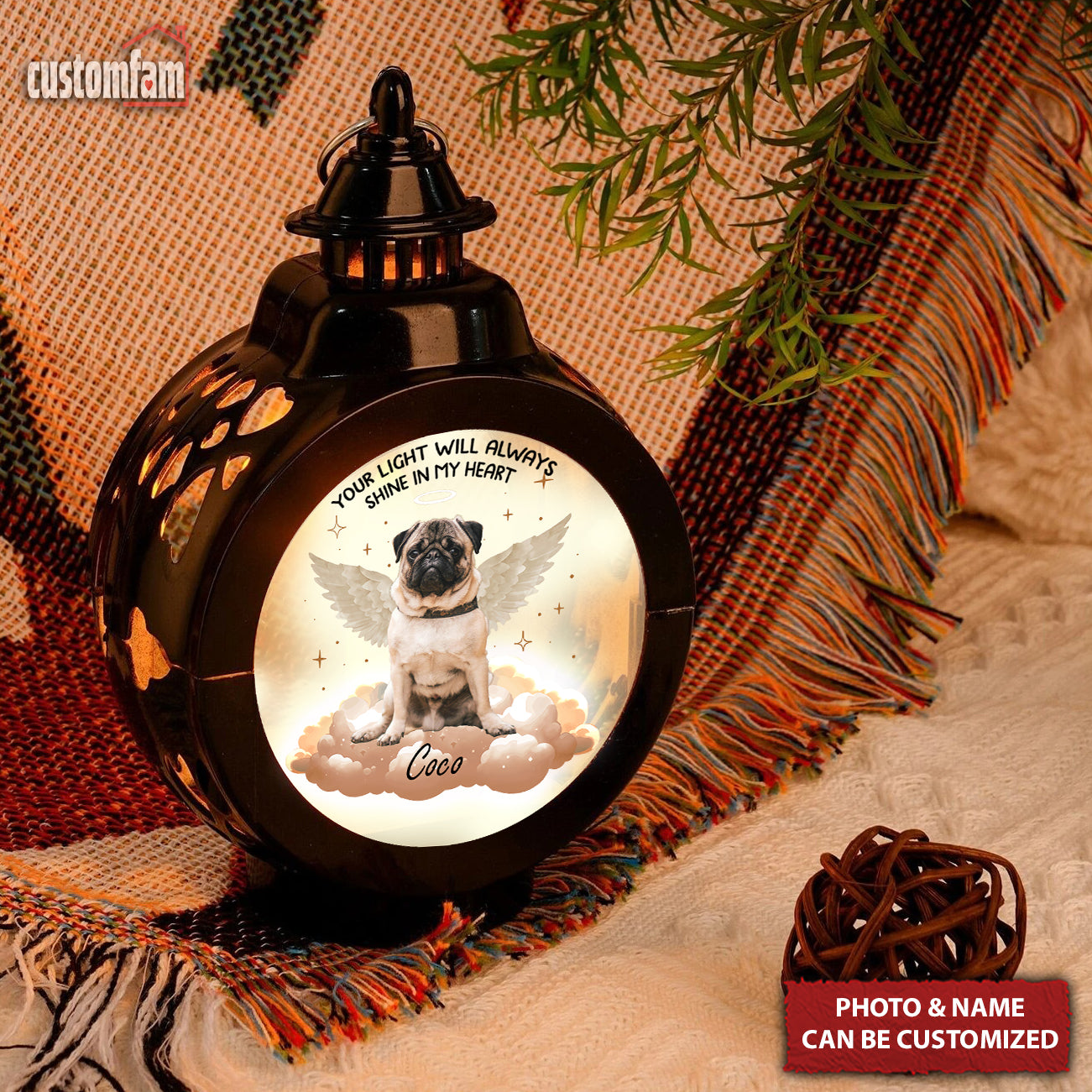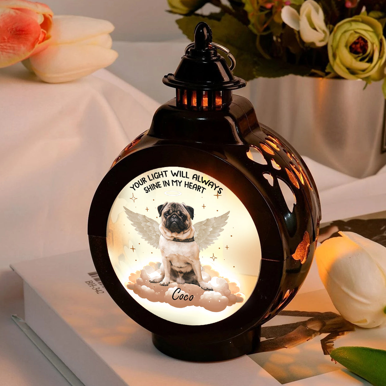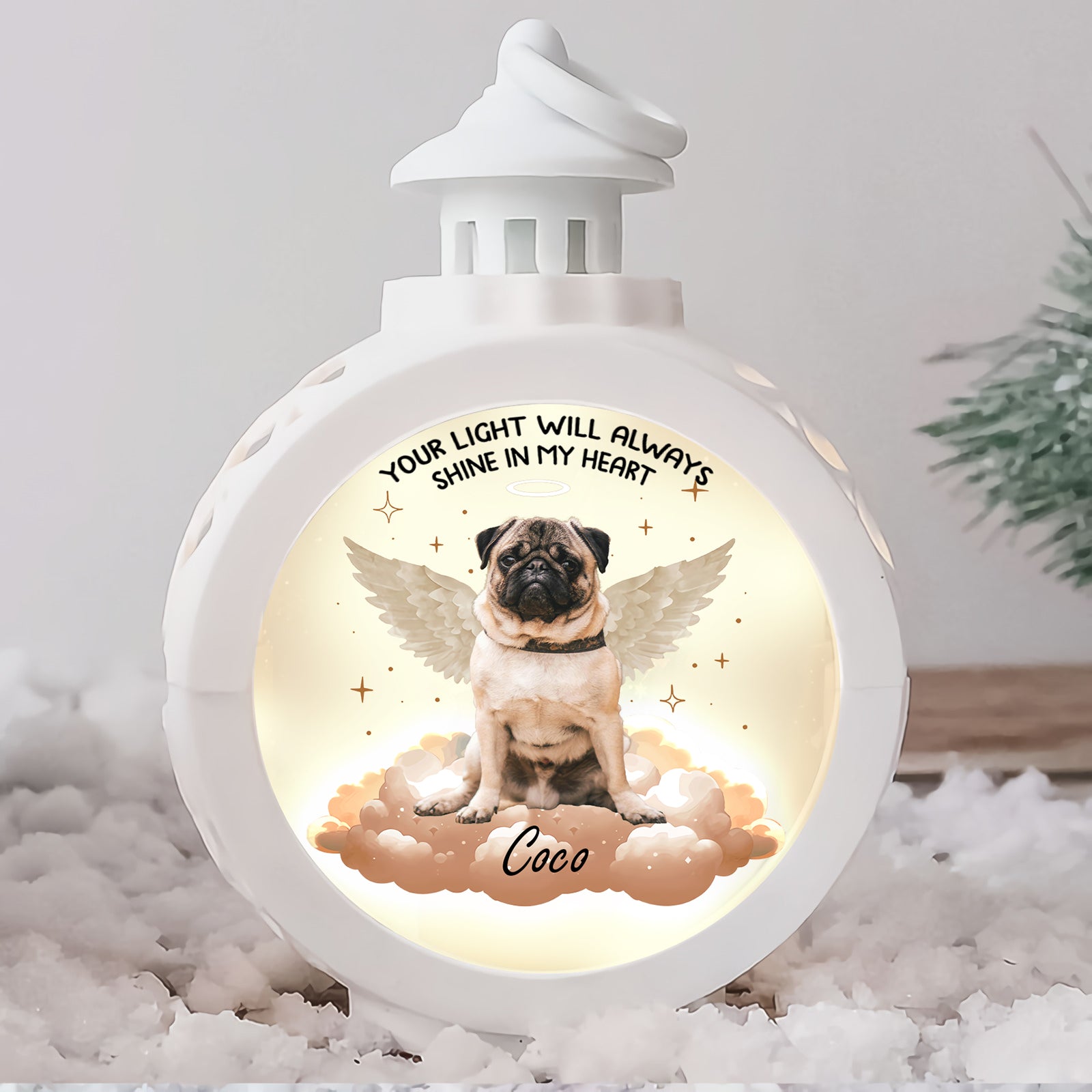- Memorial Inscription: The lantern bears a comforting message: "Your Light Will Always Shine In My Heart" offering solace and a sense of peace.