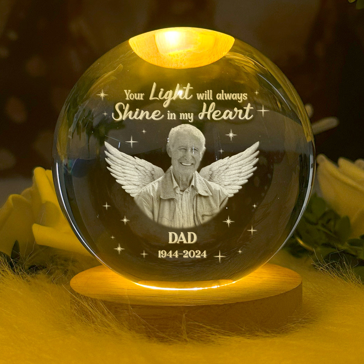Your Light Will Always Shine In My Heart Crystal Lamp, Sympathy Gifts, Memorial Gift