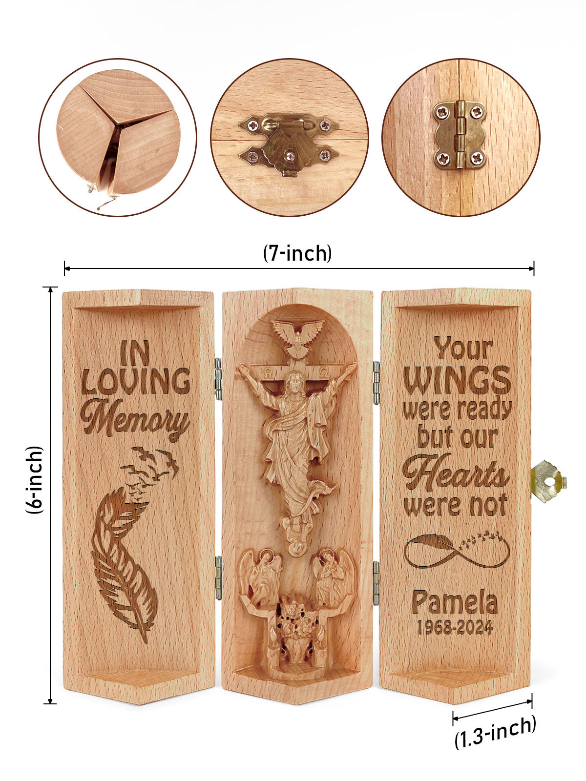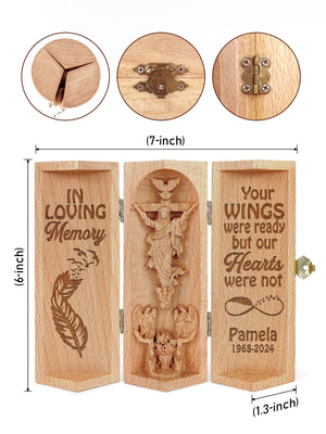 Your Wings Were Ready But Our Hearts Were Not, Personalized Openable Wooden Cylinder Sculpture of Jesus Christ, Christ Decor
