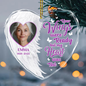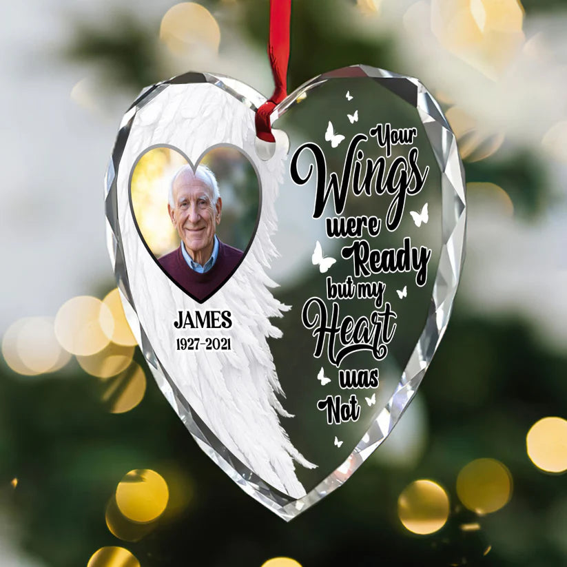 Your Wings Were Ready By My Heart Was Not Glass Ornament, Personalized Memorial Ornament, Christmas Tree Decor