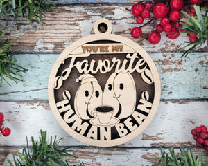 You're My Favorite Human Bean, Coffee Ornament, Couple Gift, Coffee Lover Gift, 2-Layer Wooden Ornament
