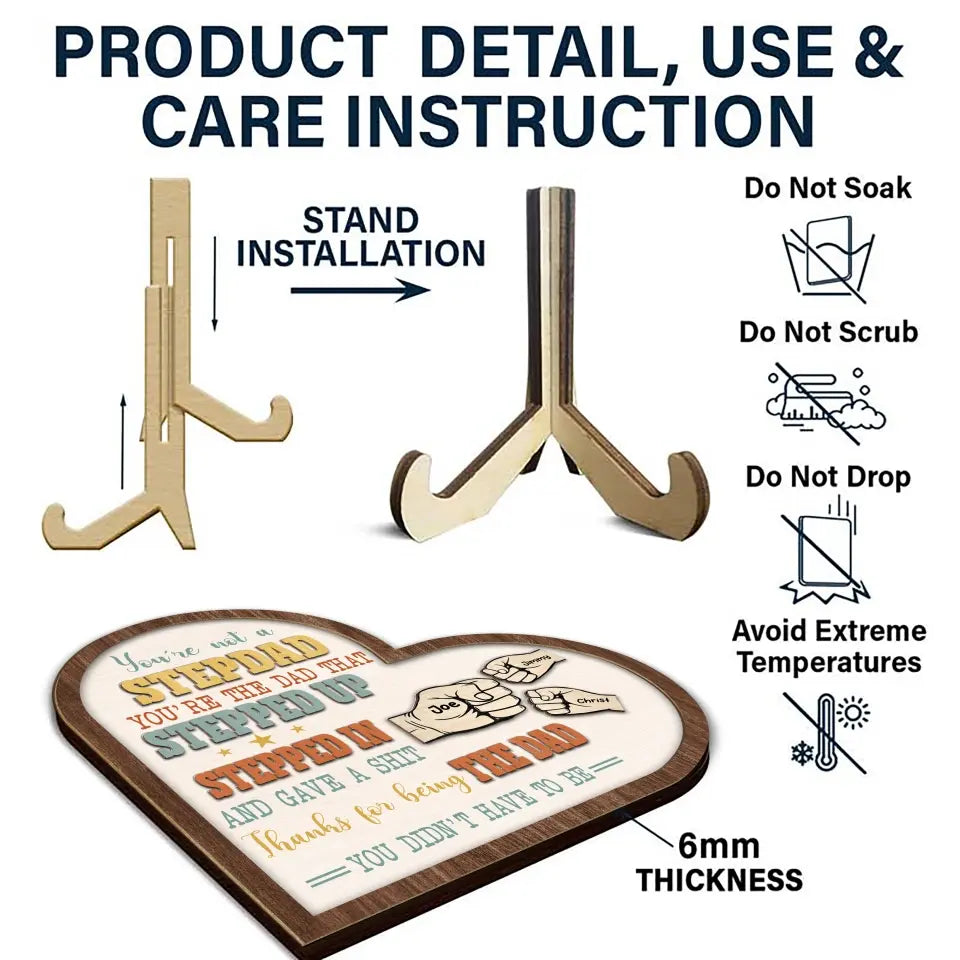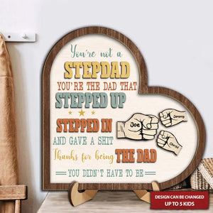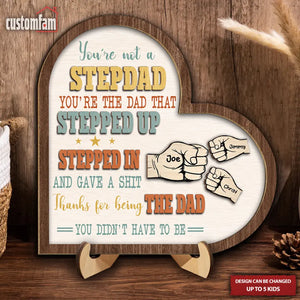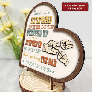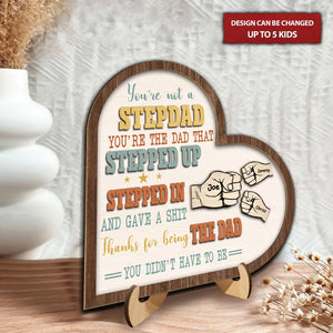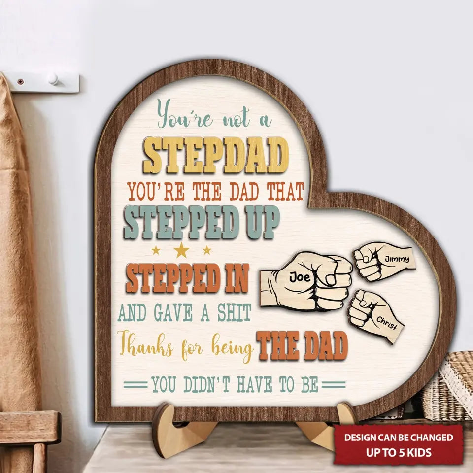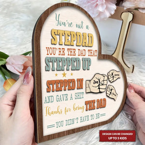 You're Not A Stepdad Personalized Wooden Heart Sign, 2 Layered Custom Plaque, Gifts For Stepdad