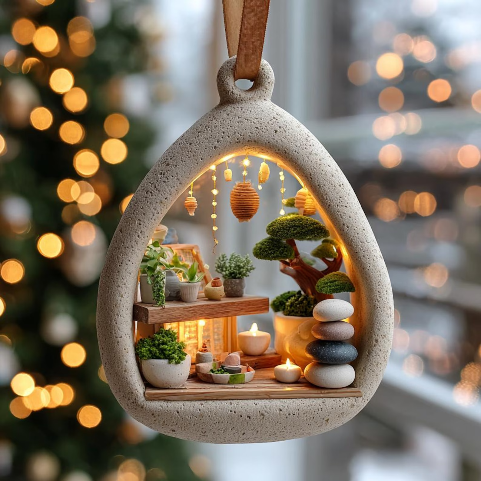 Zen Garden Terrarium Acrylic Ornament, Lovers Meditation Bonsai Tree Decor, Meditation Gift, Mindfulness Space